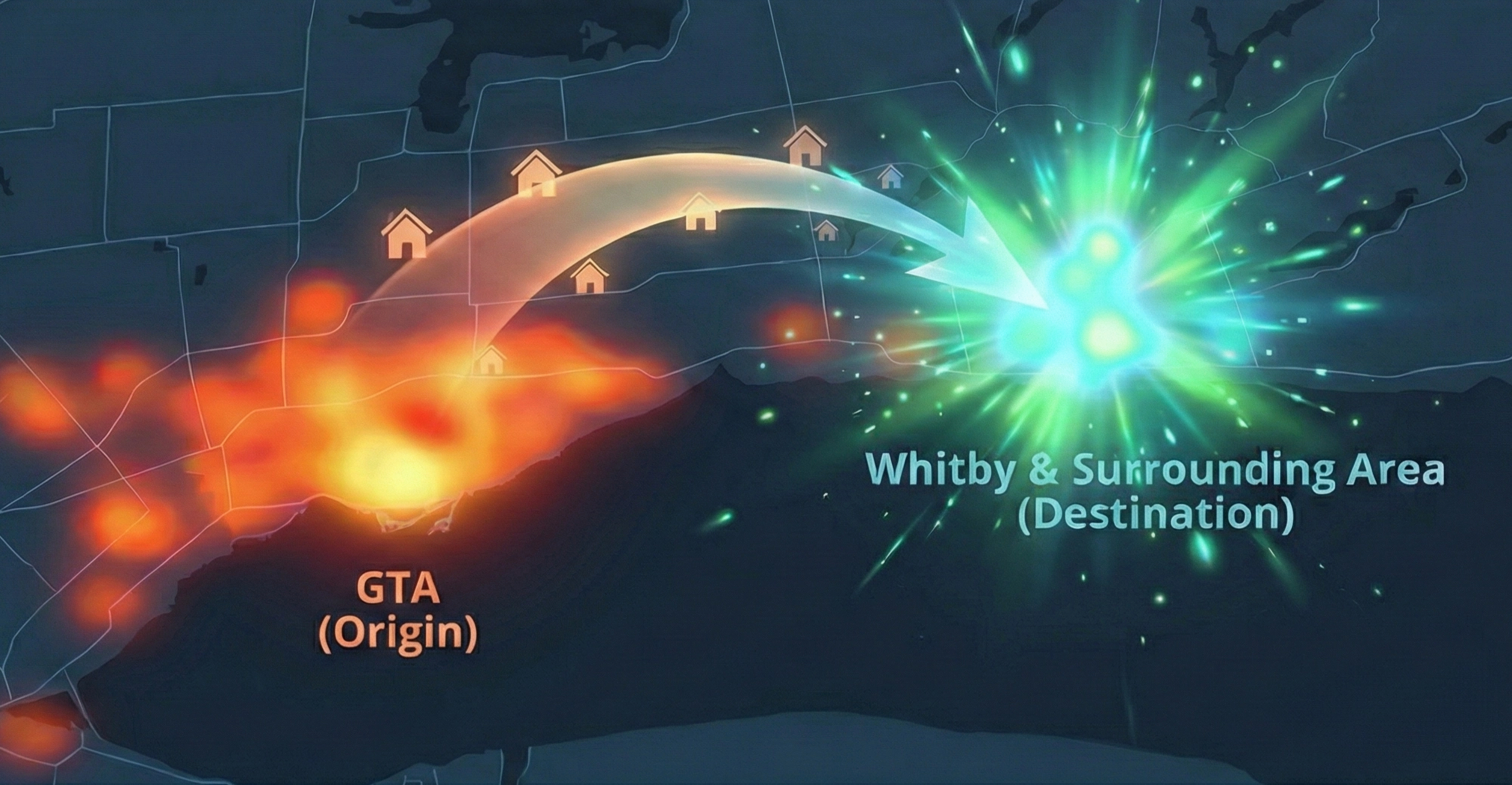 We don’t guess where your buyer lives; we know. Our AI tracks exactly which Toronto neighborhoods (like North York or Liberty Village) are currently "exiting" to Durham. We then blanket those specific streets with your home’s ads.